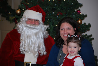 Ally was fine with Santa from afar, smiling and waving to him, but when we tried to sit her on his lap, it was a no go. Mommy ended up in a couple picture (oh, joy), which she happily smiled in,